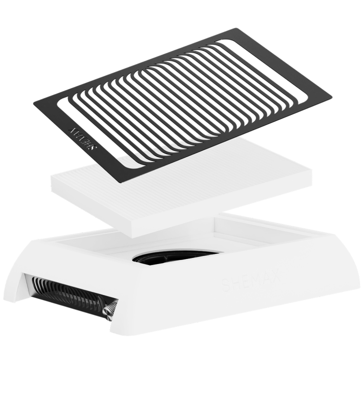 Der STYLE X-PRO-Motor wird auf Bestellung für SHEMAX gefertigt. Es erzeugt einen gleichmäßigen Luftstrom mit einer Geschwindigkeit von 2,2–3,7 m/s, wodurch Sie Manikürestaub entlang des gesamten Umfangs des Modells effektiv auffangen können. Die „Air Bowl“-Technologie (Tornado-Effekt) lenkt die kleinsten Partikel in die Mitte und hinterlässt keinen Staub.