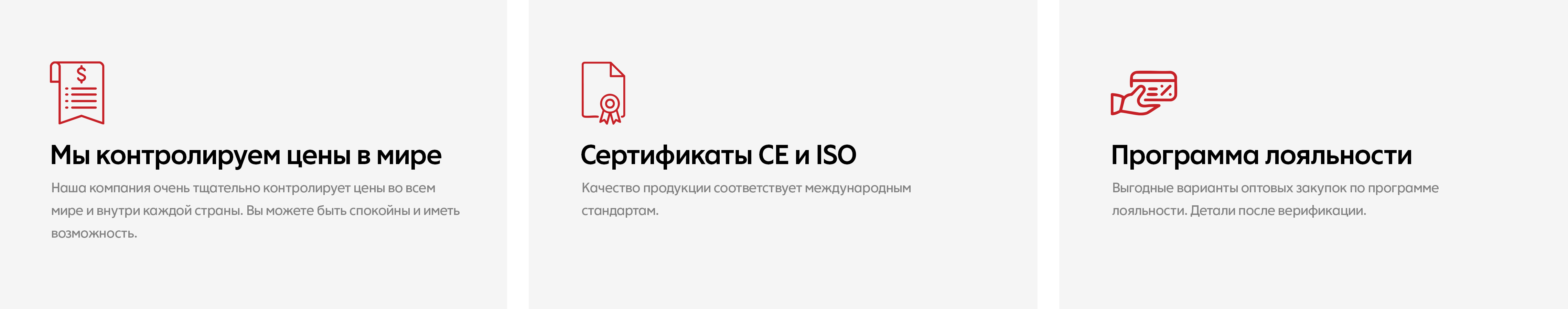 - Наличие сертификата качества на продукции
