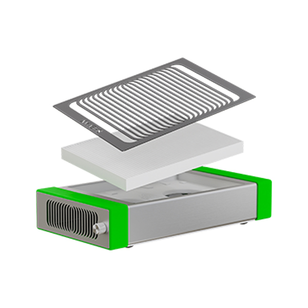 Dust collection working area – 24×17 cm. The horizontal extraction unit STYLE PRO SHEMAX Green efficiently captures dust, preventing it from spreading in the air and settling on surfaces. Collected dust is compressed and trapped in enclosed filters.